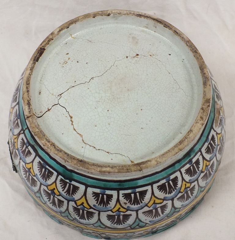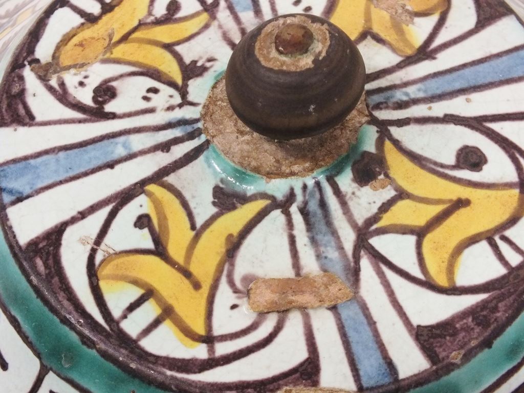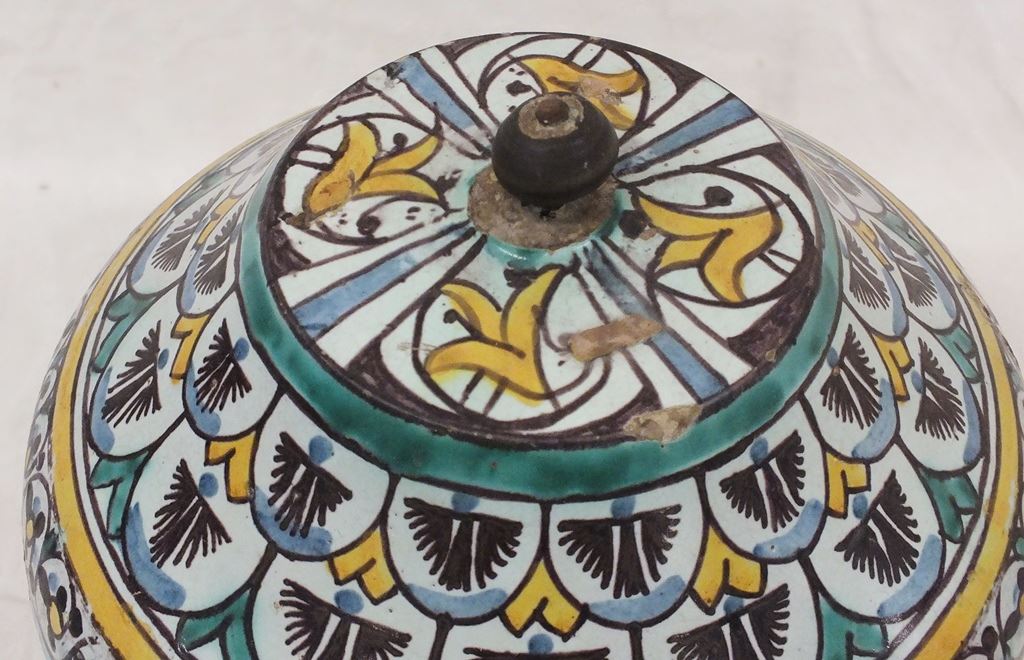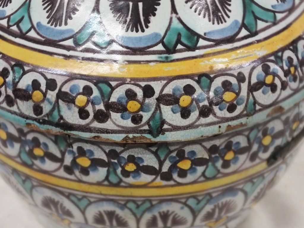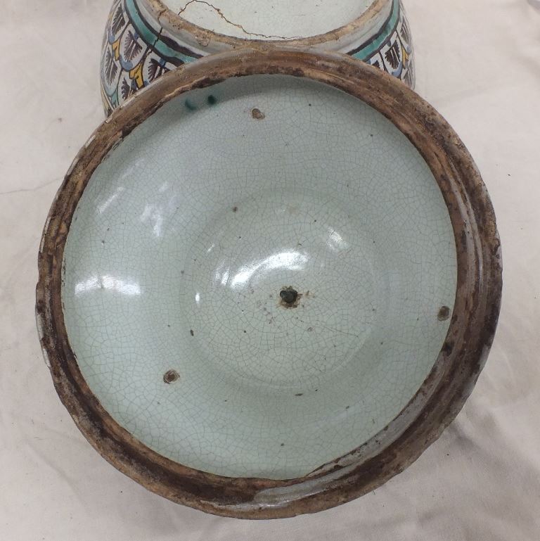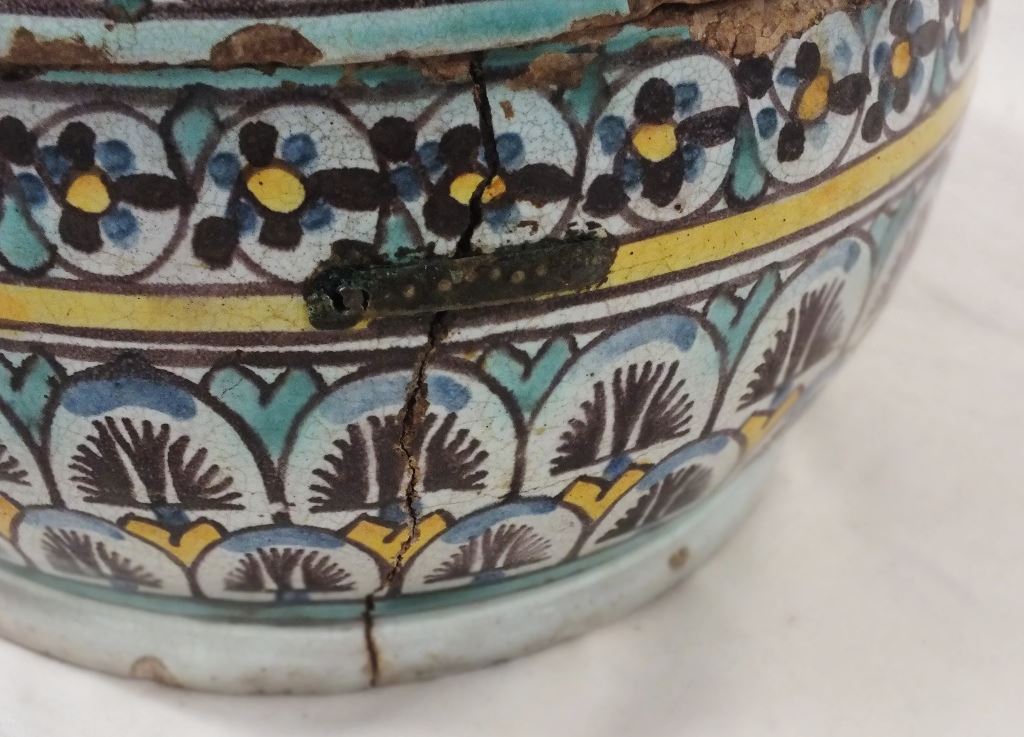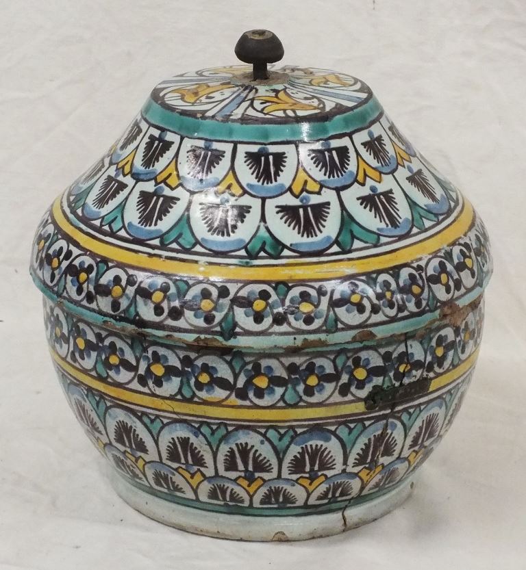 Antique Persian Tourine / jar with lid. Old staple repair, no marking.