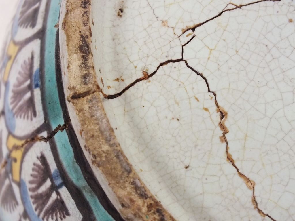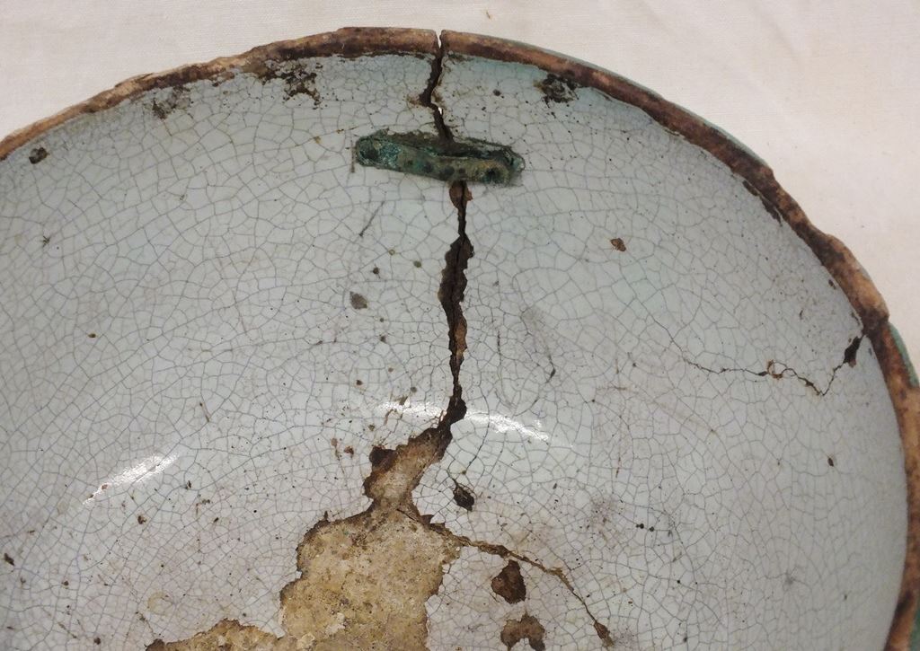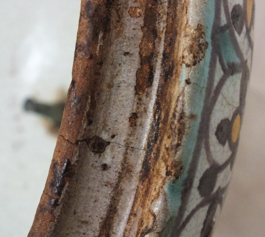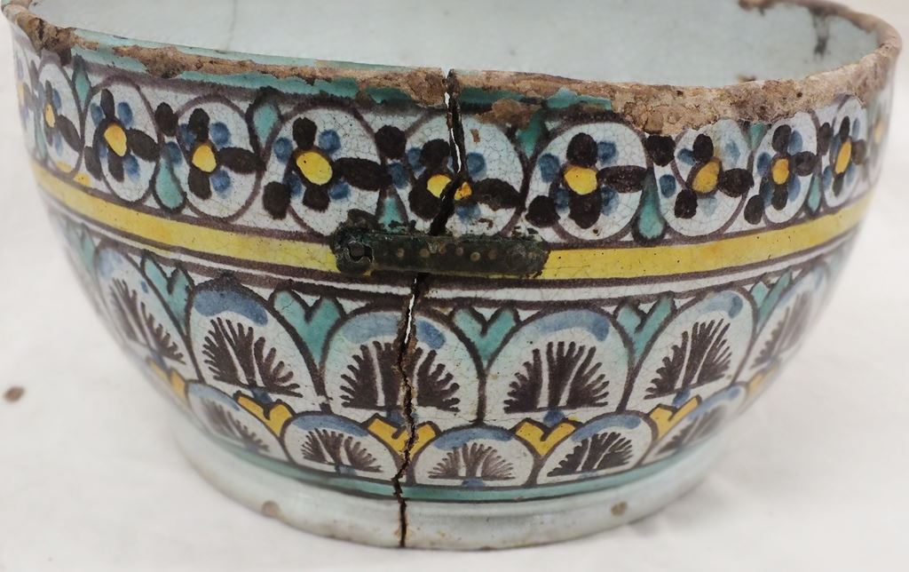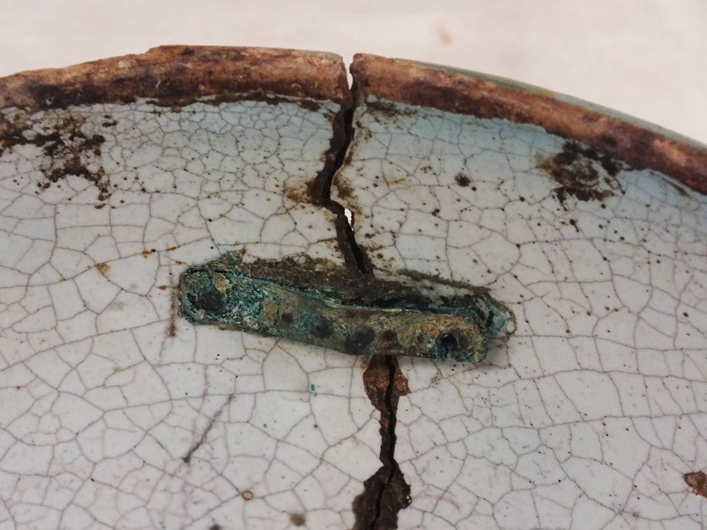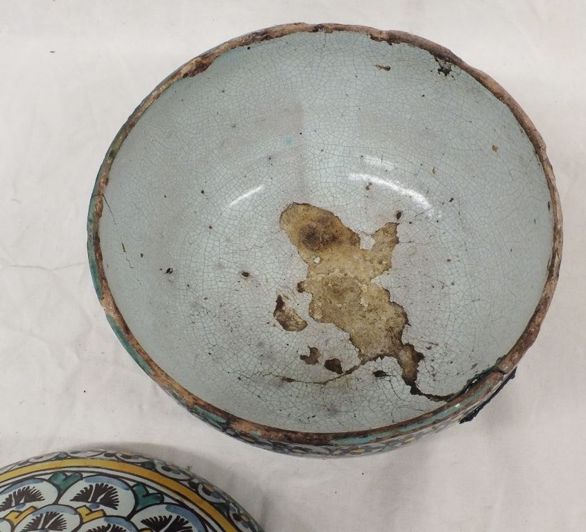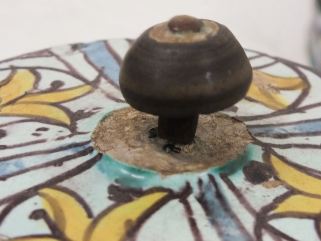 Antique Persian Tourine / jar with lid. Old staple repair, no marking.