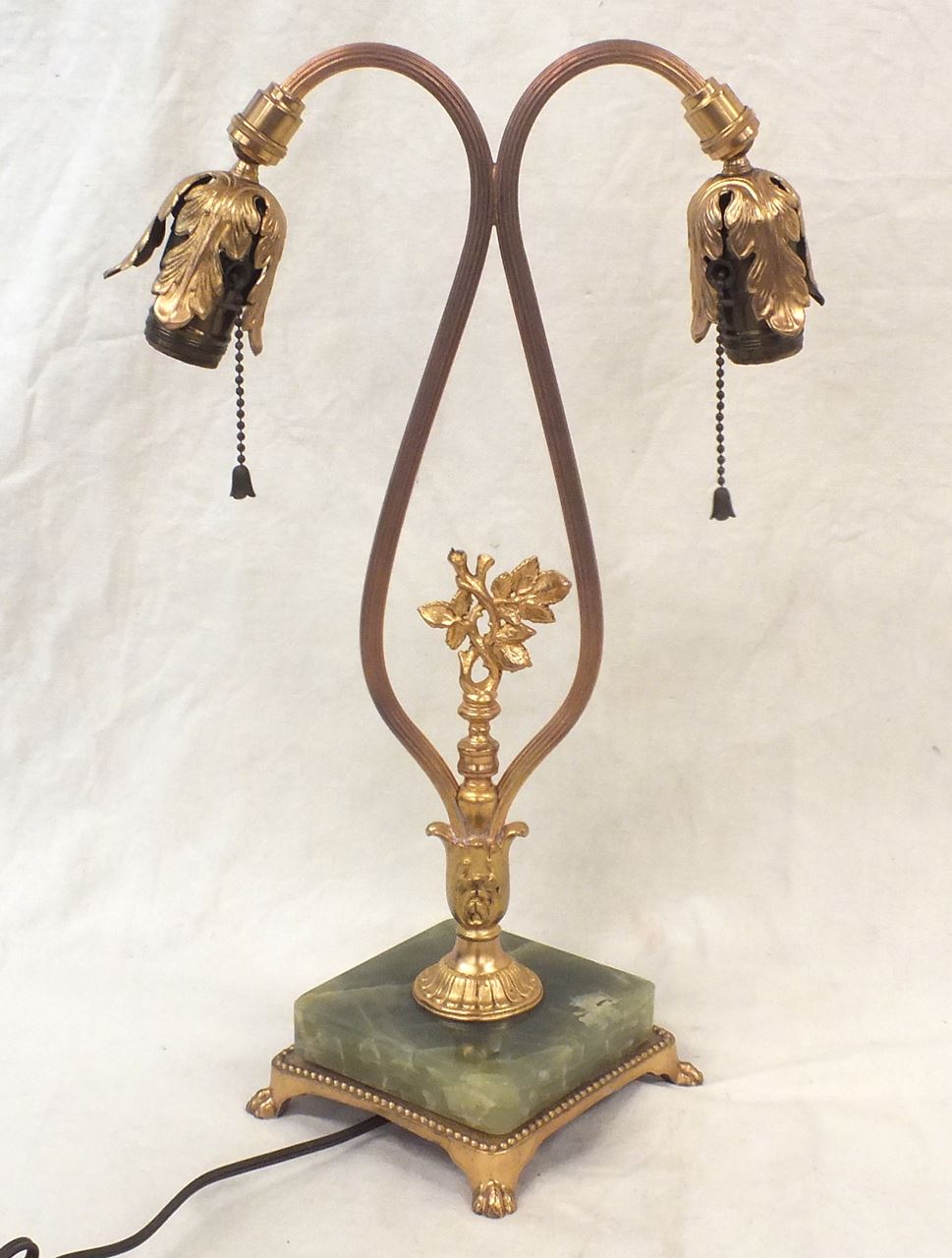 Art Deco table lamp 17" tall, 10 1/2" wide, weight 5.2 Lb. No marks.
