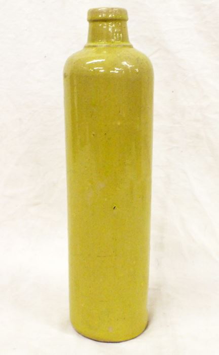 Early stoneware bottle 11 1/4" tall. 3" diameter, weight 2 Lb. No marks.