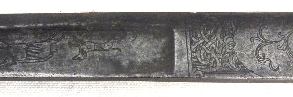Indo-Persian Islamic sword with engraved blade. Circa early 1800's.