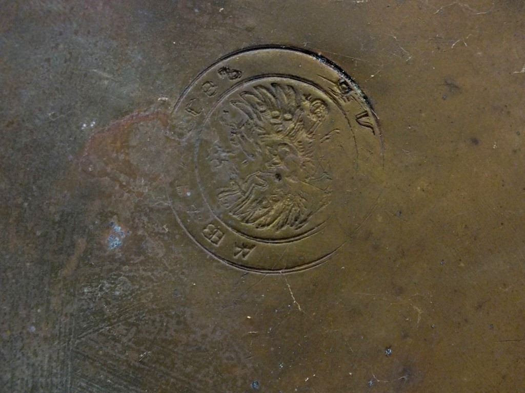 As pictured. Patina, small dings. Most likely was gilded originally.